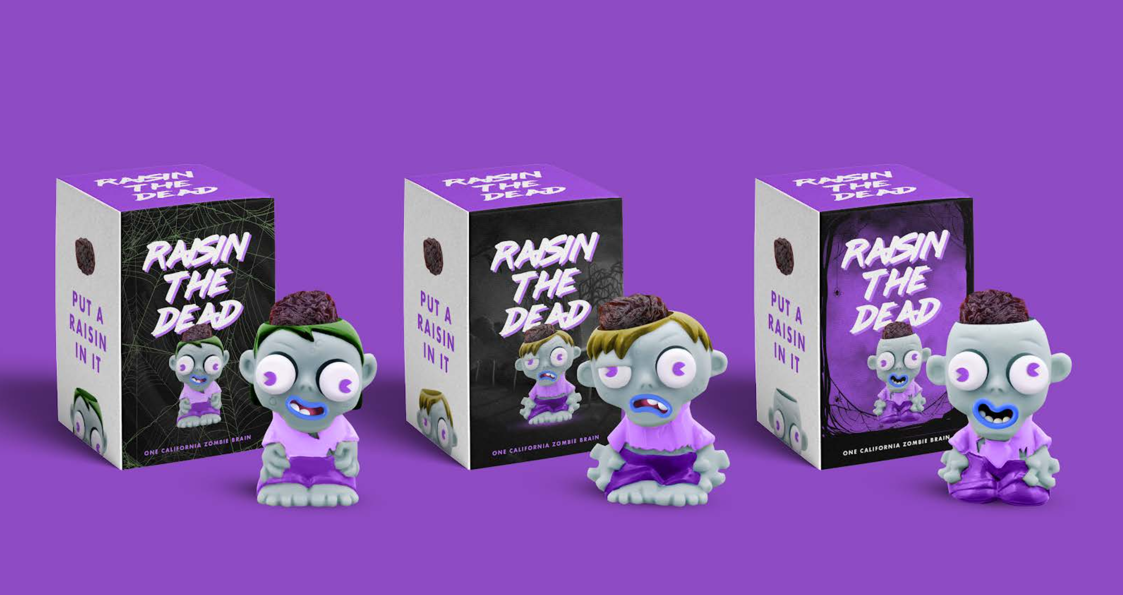 Our "put a raisin in it" campaign idea was perfect for health conscious adults. But we had a tougher sell with kids, who annually rank raisins as their least favorite Halloween treat. We get it.Raisins are weird. So weird, they look like…zombie brains. Which got us thinking. Could raisins actually be the perfect Halloween treat? Move over, Zombie Skittles, we're Raisin the Dead.